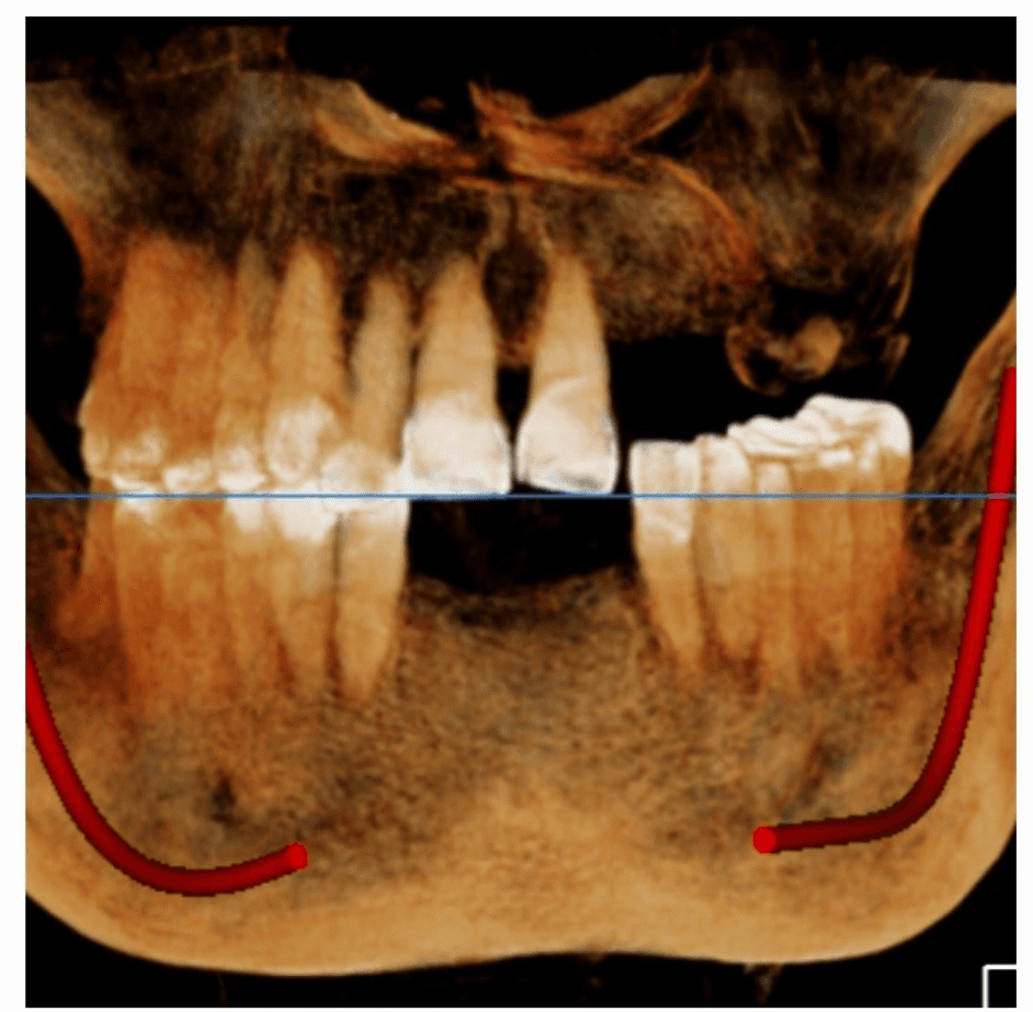 The findings confirmed severe bone atrophy in the left posterior maxilla, with extremely deficient bone height—making conventional implant placement unsafe.